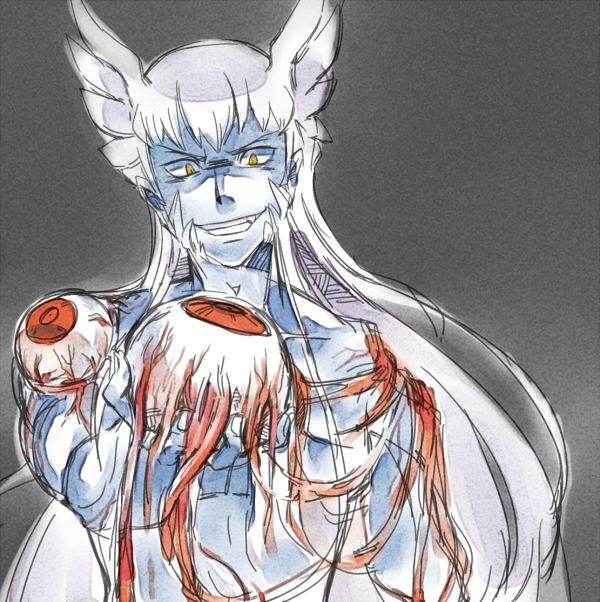 描いてみたらグロくて放置した絵にやっつけ色塗りした。ホビー…漫画…?