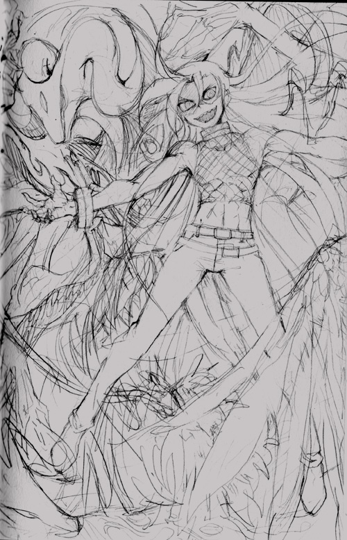 デストロイヤー描いた。後は百目たんとアプたん描いたら、クリンナップしてベタ塗りして終わらせるぞゴルァ!!!