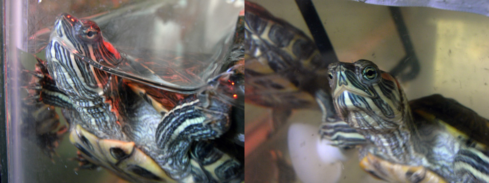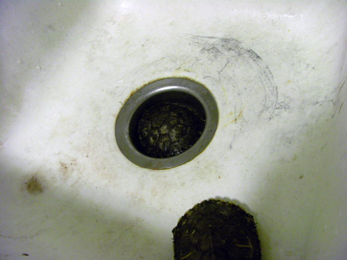 コイツラの水槽を掃除している時は流しで待っててもらうんだけど、