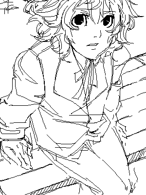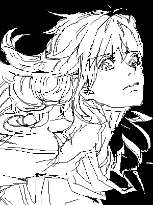 Tシャツ用なのでもともと鉛筆画だった線画を無理やり一色にまとめるとこうなります。