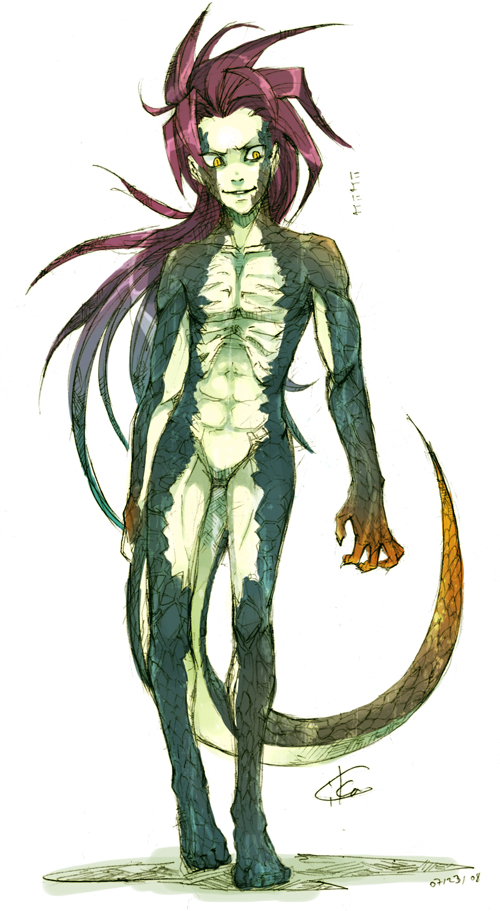 全身全裸(?)絵が描きたくなって、さらに尻尾が描きたくなって、トカゲ男になりましたとさ。