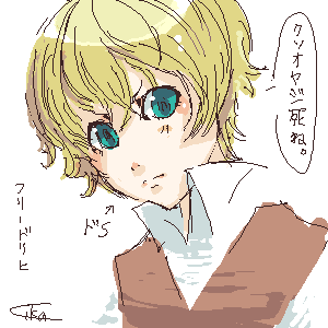お絵かき掲示板に描いたフリードリヒ。うーん全然下手wちなみに大人版も考えてある。