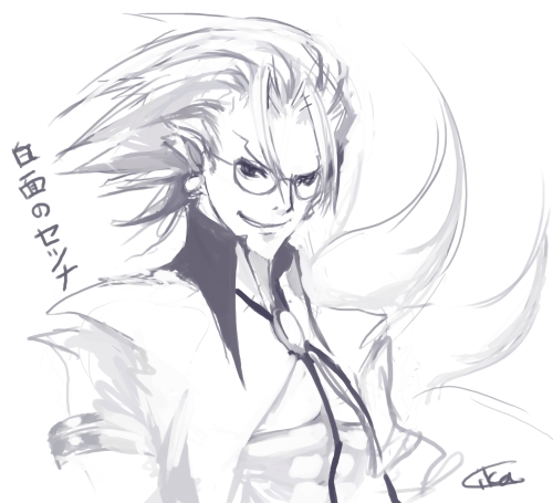 九尾の狐の擬人化は数あれど、スーパーハード(死語?)な髪+眼鏡+白スーツ(?)+腹筋というのはずば抜けて良い意味で個性的なのではないかと思う。