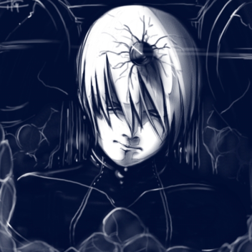 いつぞやのイラストで描いたオリキャラのフード外した版。とにかく病気っぽく髪の毛少なめに。(いつも描きすぎだし