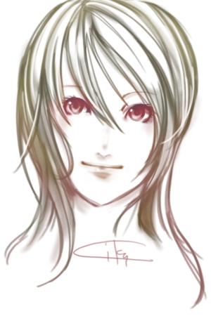 最初の絵の塗りを活かしてみた絵。髪の毛が今ひとつ…肌の塗りもまだ疑問多し。